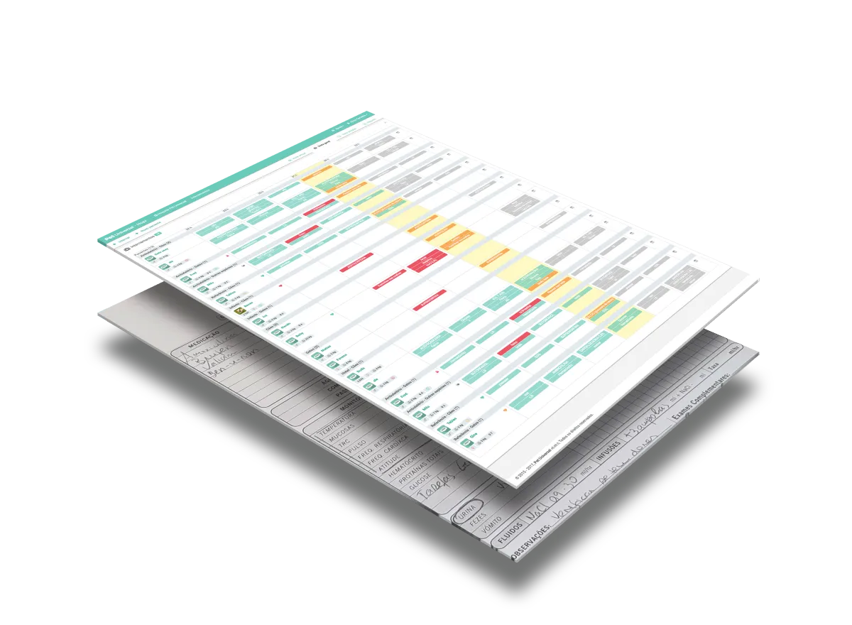 Registros com anotações SOAP, resultados de laboratório e periódicos, com uma cronologia clara.